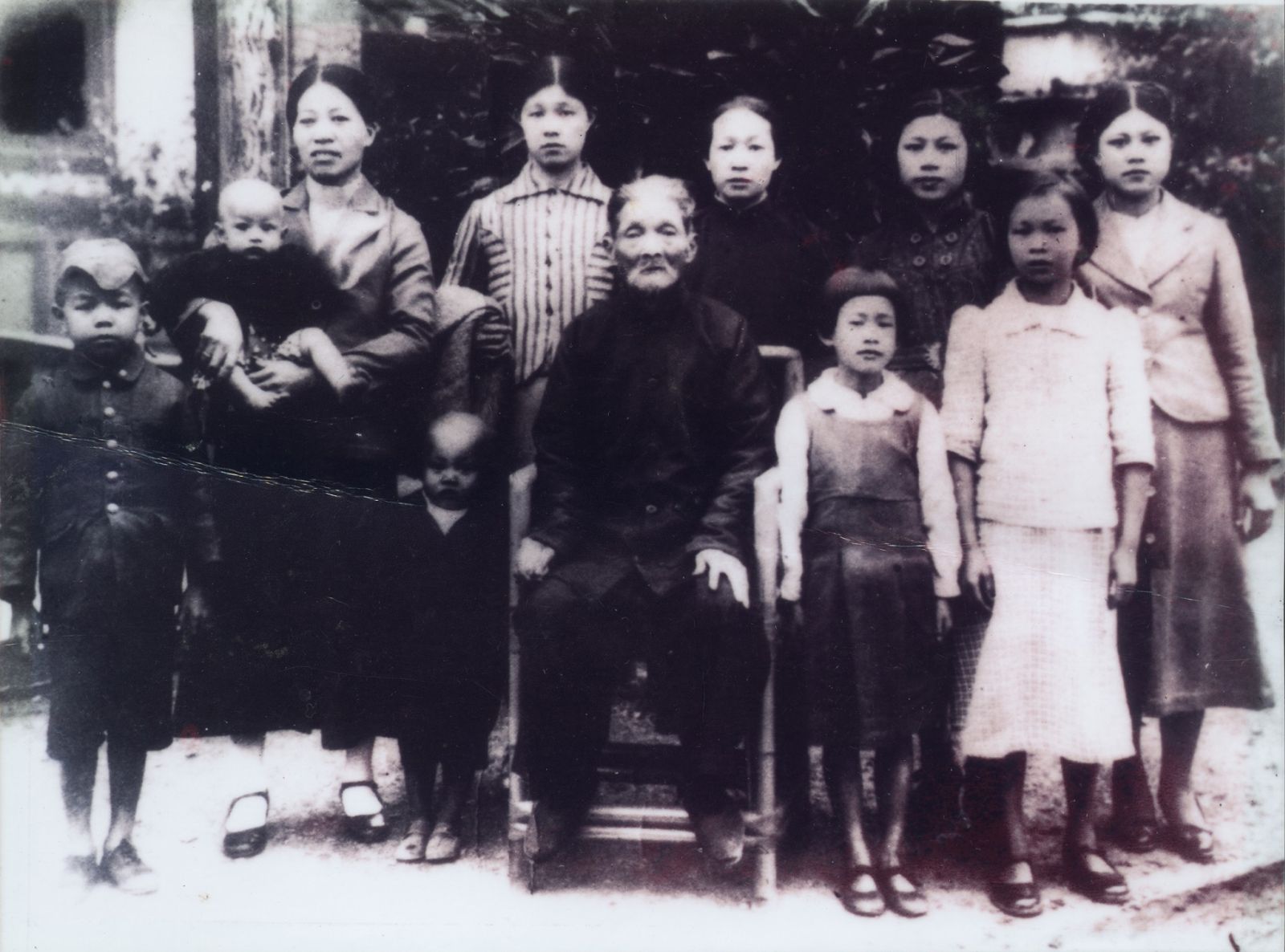 下圖所示之黑白照片係西川師傅家族僅存之舊時照片,推估係攝於1938年間,為第14世李阿細與其女兒、長媳、孫兒、孫女們,於東南蜜餞舖附近之碧霞宮 (岳飛廟)前,一同存影留念,而西川師傅則遲至1939年方出生。